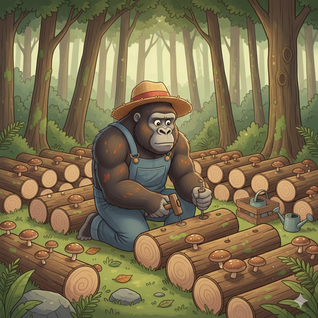 • 原木栽培:クヌギ・コナラ・栗などの原木に駒菌や菌糸を打ち込み、屋外で自然発生させる栽培