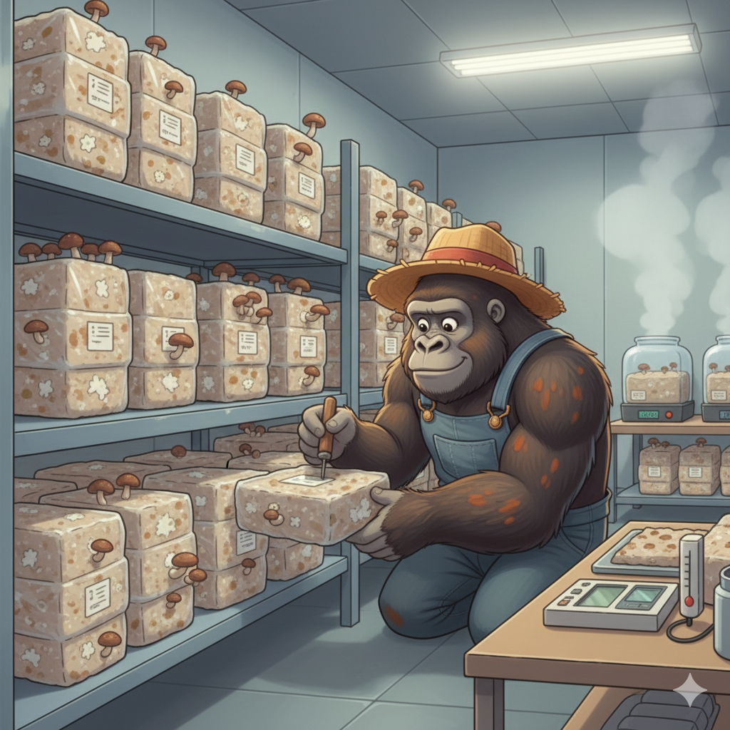 • 菌床栽培:オガ粉+栄養材を固めたブロック(菌床)で屋内栽培